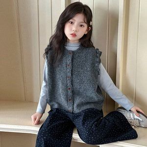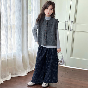 女童套装秋季新款儿童毛衣马甲打底裤子三件套女孩韩版休闲童装