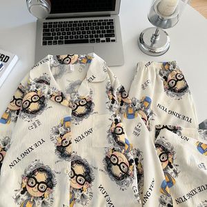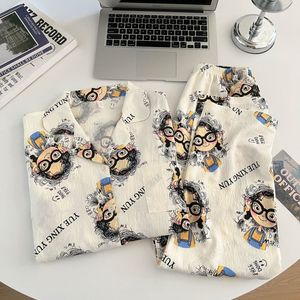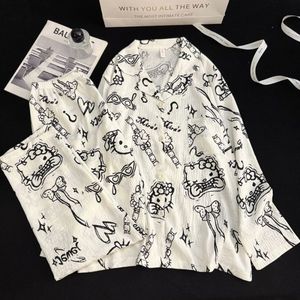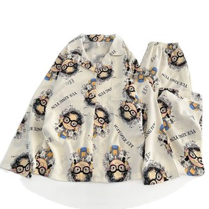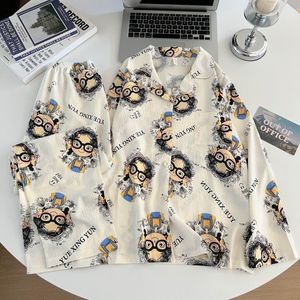 云朵棉睡衣女款春秋季满印卡通开衫长袖套装宽松休闲家居服可外穿