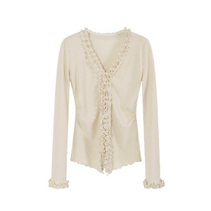 AIXILI爱西里-拼接木耳花边设计针织长袖显瘦百搭上衣针织衫15519
