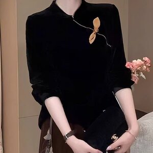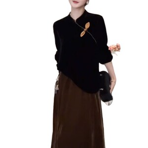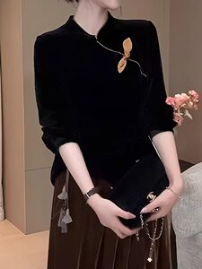 一件代发简单百搭打底衫2025秋季新款时尚新中式国风丝绒内搭上衣