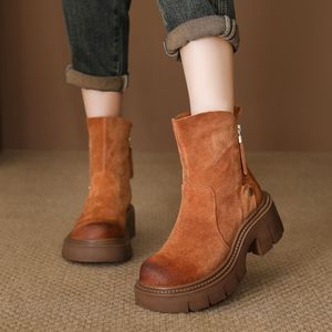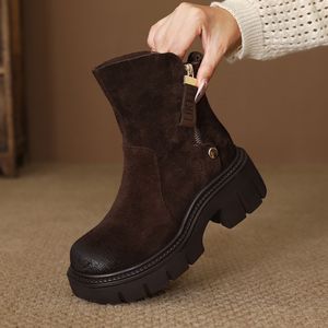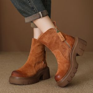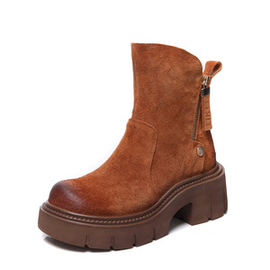头层牛皮复古马丁靴女2025秋冬新款防滑耐磨真皮厚底休闲百搭短靴