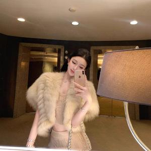 2025秋冬新款名媛风狐狸毛车条廓形落肩马甲皮草外套女斗篷小坎肩