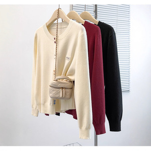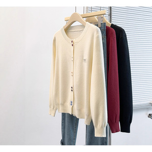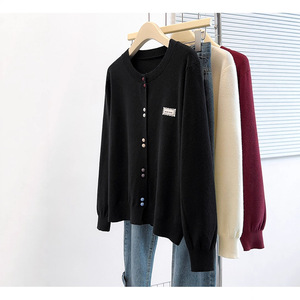 2025秋季新款胖mm大码女甜美减龄彩色纽扣贴标长袖针织开衫上衣