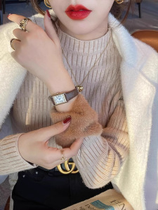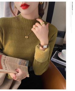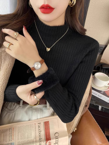 2025年秋冬季新款加绒加厚打底针织衫女半高领内搭保暖毛衣上衣