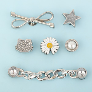 跨境热款商场洞洞鞋花一体蝴蝶结白色珍珠镶钻小红书同款扣配件