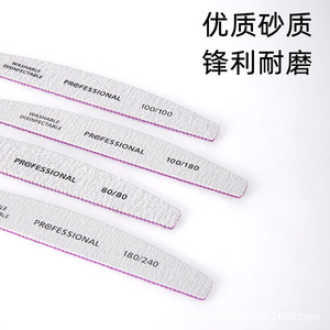 跨境热卖半月形灰色指甲锉双面粗细打磨光疗甲搓耐磨不掉砂现货