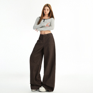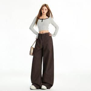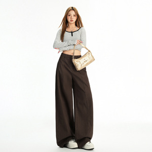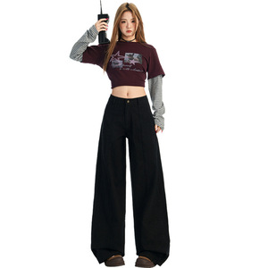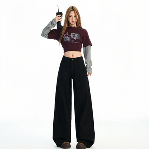 稚橘#纯黑高级感分割设计阔腿牛仔裤女宽松显瘦气质百搭直筒长裤