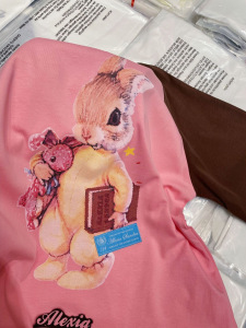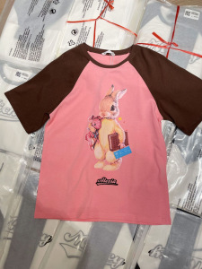 25ss南油高定/买手店小众 AS家兔子印花撞色插肩短袖纯棉宽松T恤