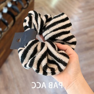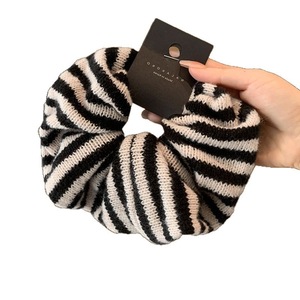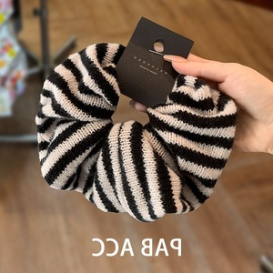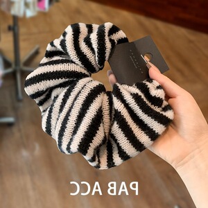 韩国东大门黑白针织撞色条纹肥肠圈秋冬温柔简约毛线扎发头绳发圈