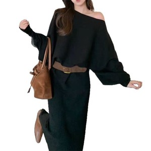 外贸百搭露肩纯欲风毛衣女秋季新款气质显瘦半身裙针织衫两件套潮