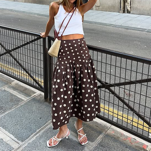 法式复古感波点褶皱半身裙女夏天优雅时尚出街聚会百搭气质A字裙