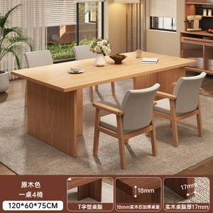 主图款【原木色 | 1.2m | 一桌4椅】桌+实木加宽扶手椅*4