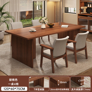 主图款【胡桃色 | 1.6m | 一桌4椅】桌+实木短扶手椅*4