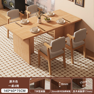主图款【原木色 | 1.4m | 一桌4椅】桌+实木加宽扶手椅*4