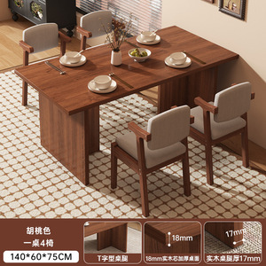 主图款【胡桃色 | 1.4m | 一桌4椅】桌+实木加宽扶手椅*4