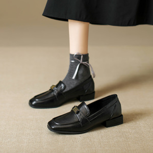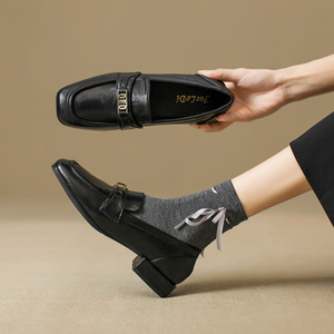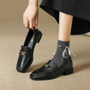 艺林跨境大码乐福鞋女2025新款一脚蹬英伦风单鞋女粗跟平底豆豆鞋