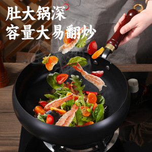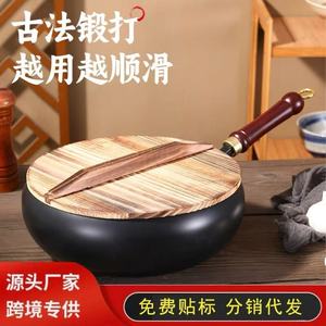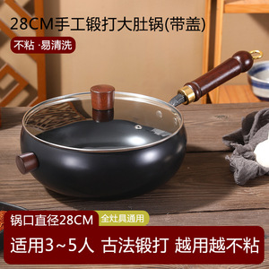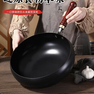 大肚铁锅古法家用深氮无涂层炒菜锅奶锅不粘锅手工铁锅炒锅奶锅