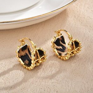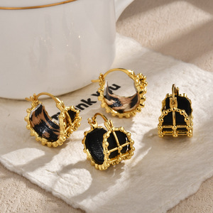 法式欧美跨境独特设计镂空豹纹皮革耳扣时尚简约气质百搭耳饰