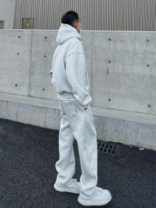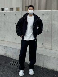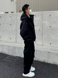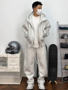 秋冬新款美式重磅休闲运动套装男士时尚宽松连帽外套直筒裤两件套