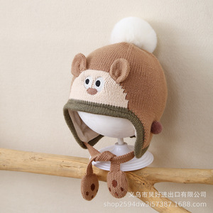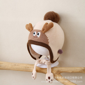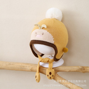 婴儿帽子秋冬季毛线帽小月龄男童针织帽冬天男孩女宝宝保暖护耳帽