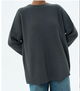 欧美跨境新款俄罗斯宽松纯色慵懒风圆领长袖针织衫宽松直筒毛衣女