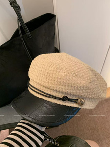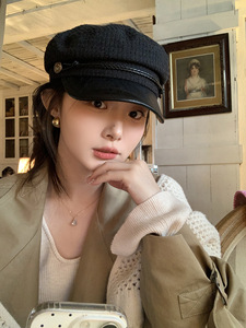 韩系复古黑色贝雷帽女秋冬感大头围报童帽画家帽子女款显脸小