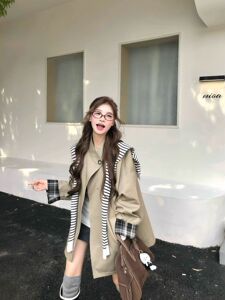 卡其色风衣外套女春秋季新款韩系感宽松显瘦中长款英伦风大衣