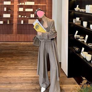 美拉德港风慵懒风针织套装秋冬新款吊带毛衣开衫外套阔腿裤三件套