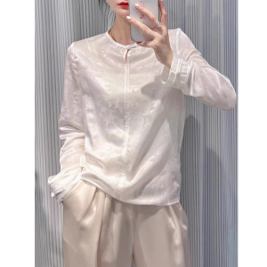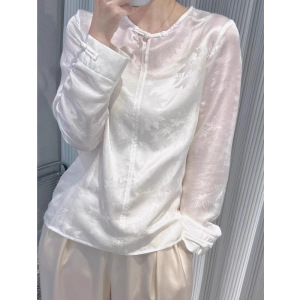2025新中式提花独特别致百搭休闲Zhen丝上衣女秋款长袖圆领衬衫潮