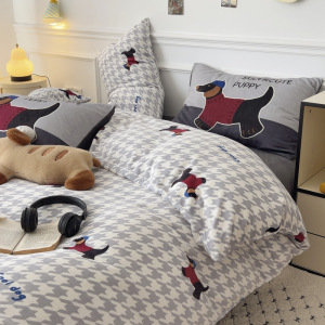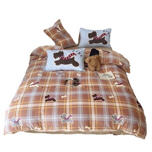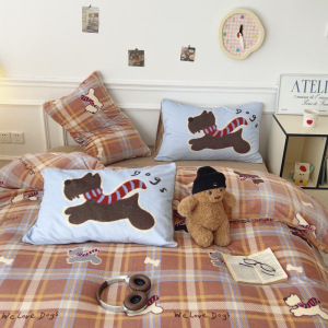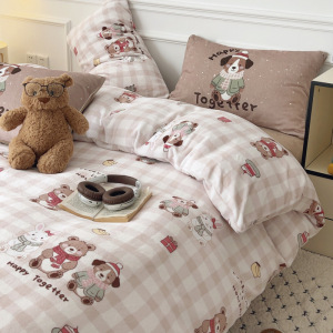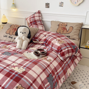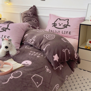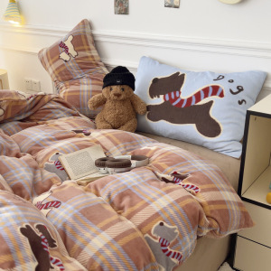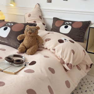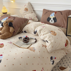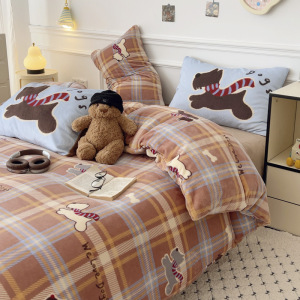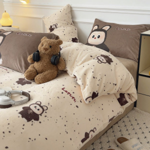 秋冬款美拉德风牛奶绒四件套卡通双面加厚珊瑚绒被套床单三件套品