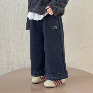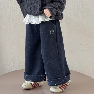女童加绒裤子秋冬季2025新款儿童冬装直筒裤女宝宝加厚休闲阔腿裤