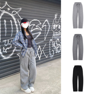 MosesQueen美式慵懒风高腰垂感阔腿裤女秋冬宽松直筒长款休闲卫裤
