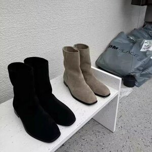 羊皮版~2025新款韩版高级感绒面短靴西部靴女平底软底休闲单靴子