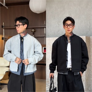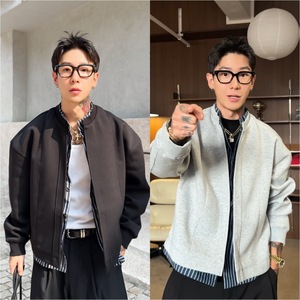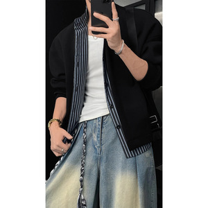 秋季高级感美式潮流设计假两件百搭早秋日常痞帅穿搭男士夹克外套