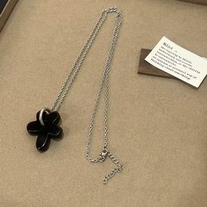 天然石斑点花朵不锈钢项链高级感长款韩式气质百搭毛衣链颈链配饰