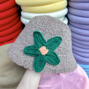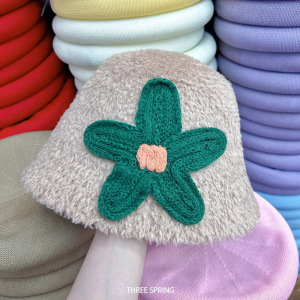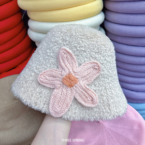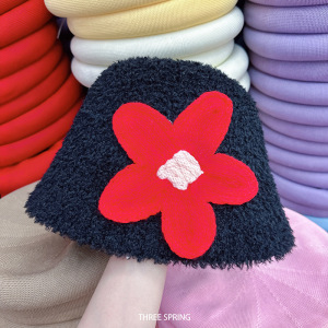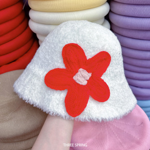 批发韩国2025年秋冬新款日系甜美花朵毛绒渔夫帽大头围显脸小盆帽