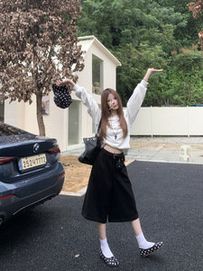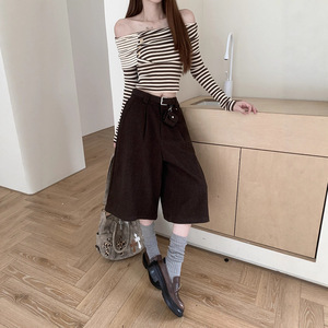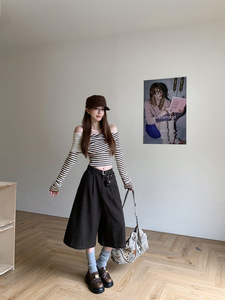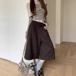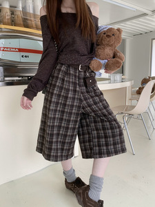 毛呢七分格子阔腿裤女2025秋季新款高腰显瘦设计感复古直筒休闲裤