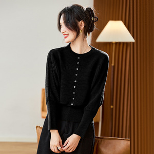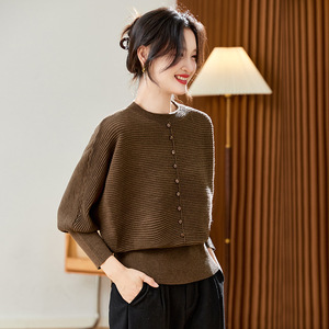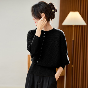 早秋韩系穿搭法式慵懒风宽松针织打底衫女春秋宽松蝙蝠袖毛衣上衣