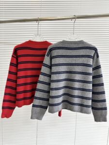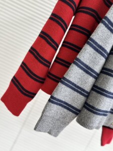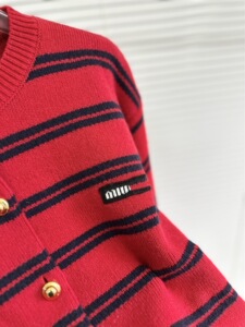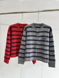 南油喵喵纯原高版本条纹毛衣单排扣圆领新年红针织开衫外套女秋冬