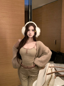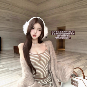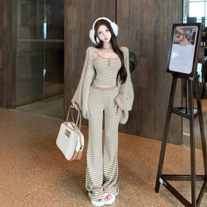 RHGD实拍 纯欲慵懒条纹吊带高腰垂感宽松显瘦休闲裤毛衣针织外套