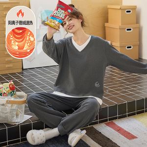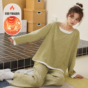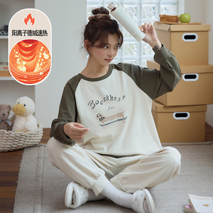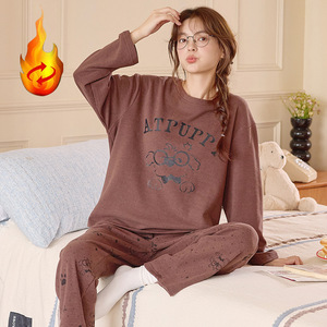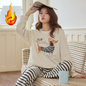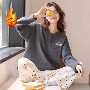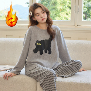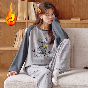 2025新款德绒长袖睡衣女秋冬季卡通可爱休闲圆领家居服可外穿套装