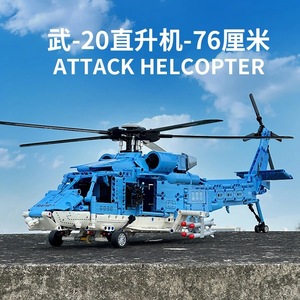 大型鱼鹰直升机积木拼装玩具直20战斗机军事飞机模型儿童益智男孩