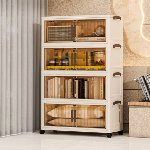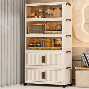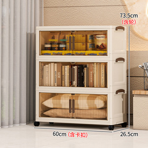 新款透明收纳储物柜带柜门多层置物架塑料零食柜儿童储物柜批发