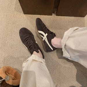 现货~超火内增高阿甘鞋女秋冬时髦撞色系带百搭休闲学院风板鞋