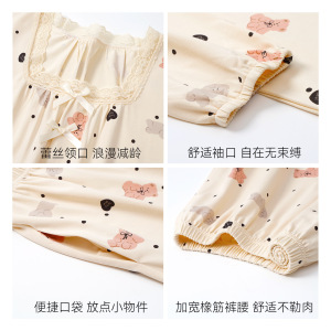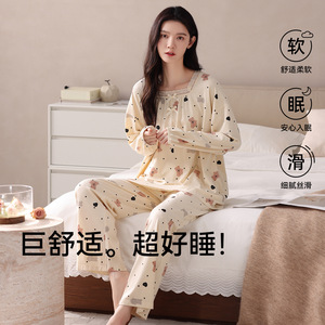 莱卡棉睡衣女春秋季柔软长袖长裤圆领可爱学生纯棉舒适家居服套装