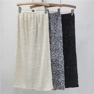 法式重工丝绒亮片半身裙女2025新款秋冬高腰显瘦百搭包臀中长裙