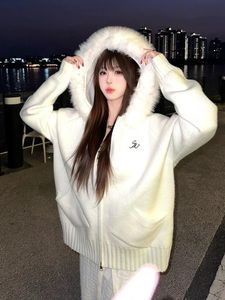 软糯温柔连帽毛领针织开衫外套女秋冬新款宽松慵懒风百搭拉链毛衣