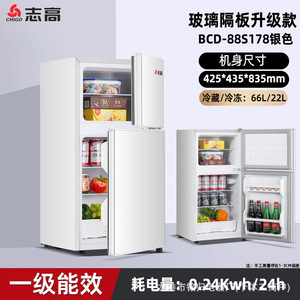 178亮银】玻璃隔板/一级能效/加厚保温88L