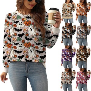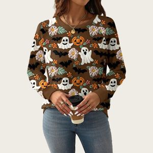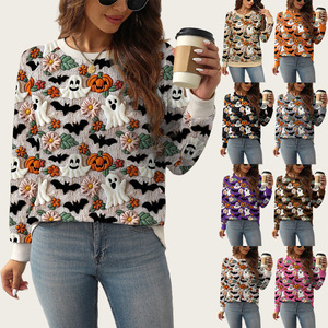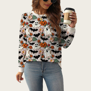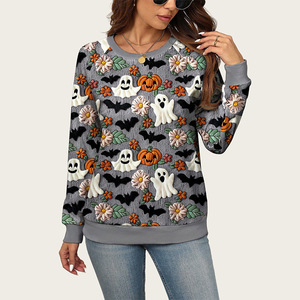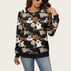 秋冬新款跨境欧美亚马逊爆款幽灵南瓜万圣节套头圆领卫衣女装大码