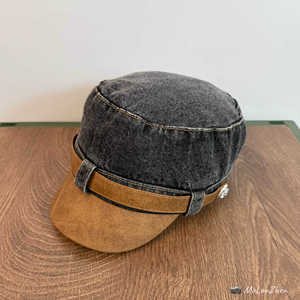 高品质秋冬水洗复古牛仔马术帽英伦PU皮帽檐画家帽时尚潮流报童帽